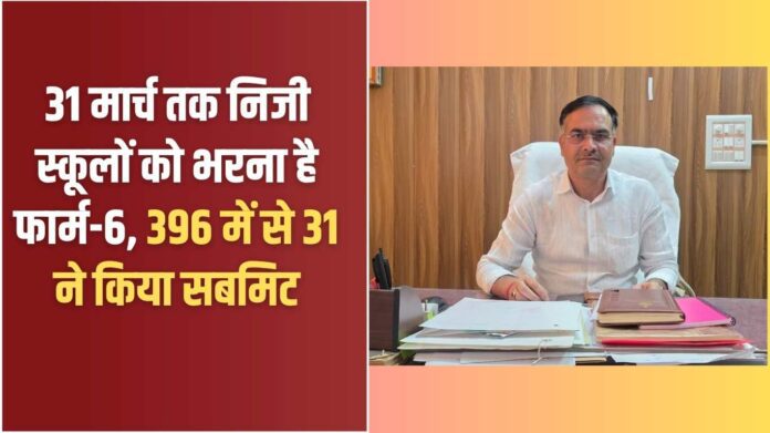 Education Jind : नए शैक्षणिक सत्र में फीस बढ़ाने से पहले निजी स्कूलों को फार्म-6 अनिवार्य रूप से भरना है। जिले के 396 स्कूलों को एमआइएस पोर्टल पर आनलाइन माध्यम से फार्म-6 जमा कराना है, जिसमें से 31 स्कूलों ने फार्म-6 सबमिट कर दिया है और 365 स्कूलों द्वारा फार्म-6 अपलोड करने की प्रक्रिया प्रोसेस में है। शिक्षा निदेशालय के आदेशानुसार 31 मार्च तक फार्म-6 जमा करवाने का समय है। इससे पहले निजी स्कूल संचालक अपने स्कूलों में फीस की बढ़ोतरी नहीं कर सकेंगे।