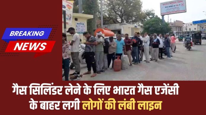 Gas cylinder problem : जींद में गैस सिलिंडर लेने के लिए रविवार को भारत गैस एजेंसी के बाहर लोगों की लंबी लाइन लगी। एजेंसी खुलने से पहले ही लोग लाइन में लगे थे। उपभोक्ताओं की लाइन एजेंसी के गेट से शुरू होेकर नेहरु पार्क के गेट से आगे चली गई थी। सिलिंडर लेने के लिए अलग से महिलाएं भी अलग से लाइन में लगी थी।